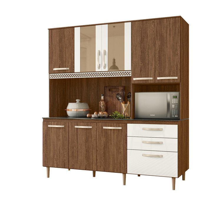 Kit Cozinha Manu c/ Porta de Vidro Évora/Off White - Bela Móveis