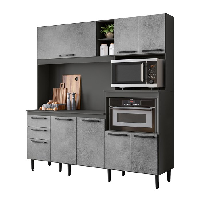 Kit Cozinha Pietra com Tampo e Forro Chumbo/Concreto - Bela Móveis