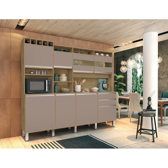 A Vita Moveis desenvolveu o Kit Armario de Cozinha Smart com 08 portas, 02 gavetas com corredicas telescopicas que permite a abertura sem enrosco, armario ideal para manter todos seus pertences organizados, alem de nicho para objetos decorativos e adega para 05 garrafas, tudo o que precisa em um unico produto, ideal para deixar seu ambiente organizado. O chame fica por conta do detalhe em Vidro reflecta, detalhe esse que vem seguindo as tendencias de decoracao de ambientes combinando com os mais diversos moveis. E para facilitar na hora da limpeza o armario Smart conta com pes alto.