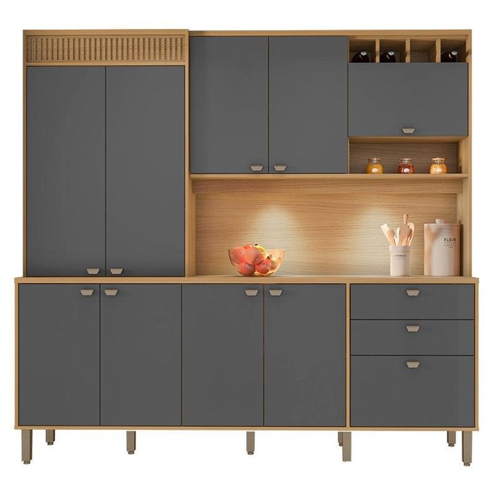 Kit Cozinha Tamiris com Led Carvalho Americano Grafite - Incorplac