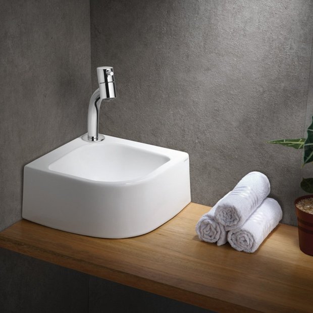 Kit Cuba Apoio/Suspenso com Torneira LS-50 Lorenzetti  Cuba branca, torneira cromada, válvula cromada, flexível cromado e sifão branco.