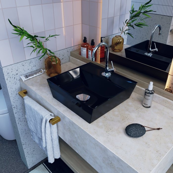 O Kit KTCAAQ330W.PT.1198.V03 é uma combinação perfeita da Cuba de Apoio CAAQ330W.PT com acessórios complementares, prontos para instalação no seu lavabo ou móvel de banheiro. Ele conta com 1 Cuba de Apoio Angular Quadrada Volcano 33X30cm Preto 1 Torneira de Mesa p/Lavatório SL1198 1/4 Volta Metal Cromado 1 Válvula P/Lavatório Click Up 1" (2,6cm) V03 Metal Cromado 0 0 0 , todos compatíveis e prontos para instalação.