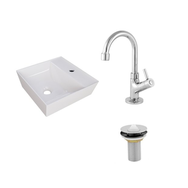 1 Cuba de Apoio + 1 Torneira de mesa baixa + 1 Válvula de Escoamento