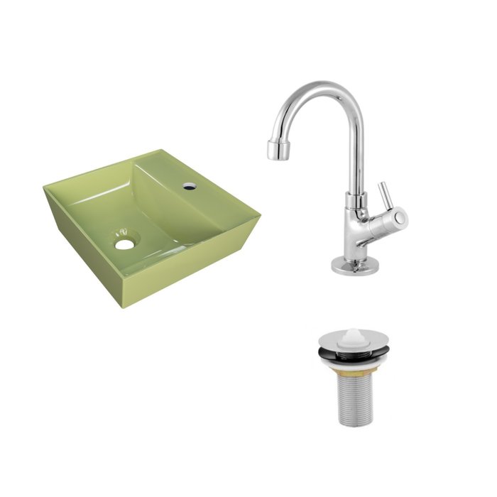 Kit Cuba Aq33 Volcano com Torneira 1198 e Válvula Metal Verde Acqua