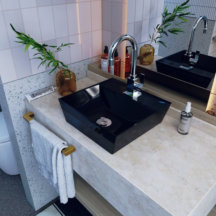 O Kit KTCAAQ330W.PT.LC70.V02 é uma combinação perfeita da Cuba de Apoio CAAQ330W.PT com acessórios complementares, prontos para instalação no seu lavabo ou móvel de banheiro. Ele conta com 1 Cuba de Apoio Angular Quadrada Volcano 33X30cm Preto 1 Torneira De Mesa Classic Luxo 1/4 De Volta 1195 C70 1 Válvula P/Lavatório Click Up Interno 1" (2,6cm) V02 Metal Cromado 0 0 0 , todos compatíveis e prontos para instalação.