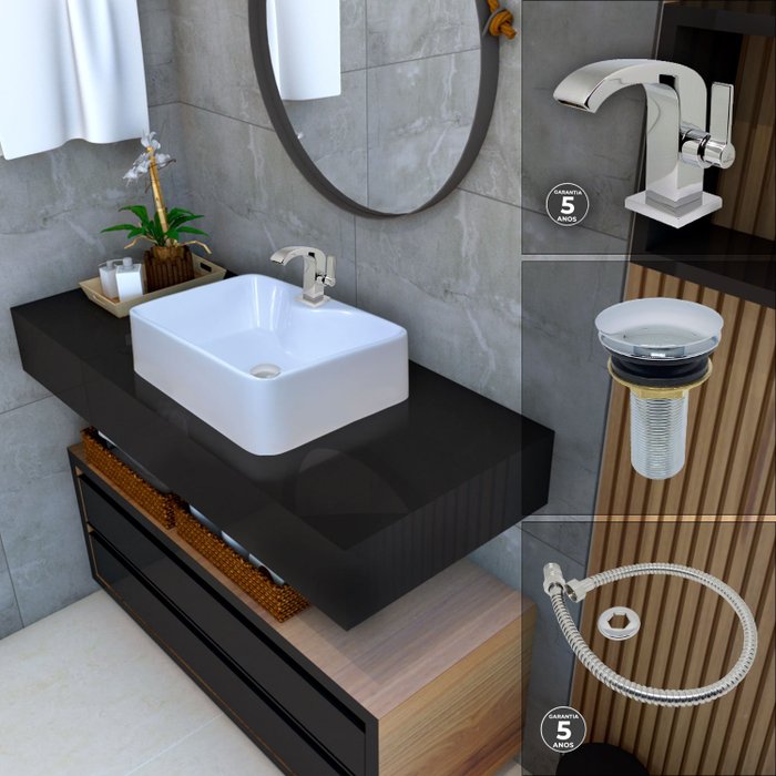 | Itens Inclusos | 1 Flexível 1 Cuba Lapa 1 torneira Square 1 válvula Click |