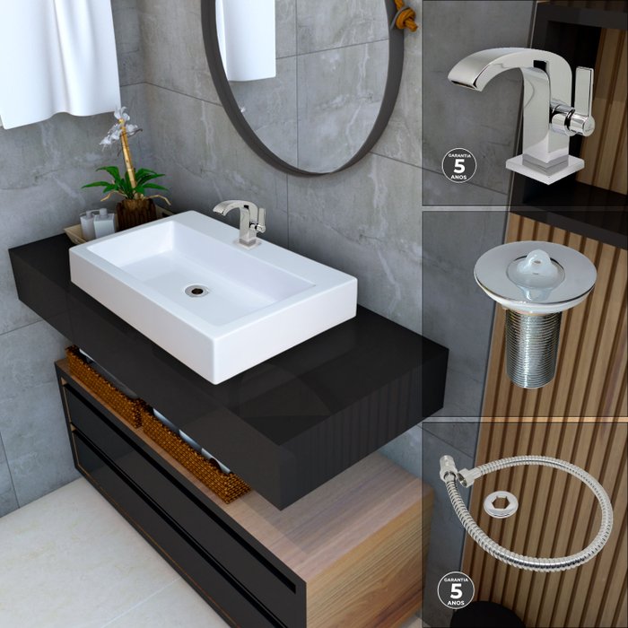Kit cuba de apoio Paris torneira Square válvula Stander e flexível cromado
