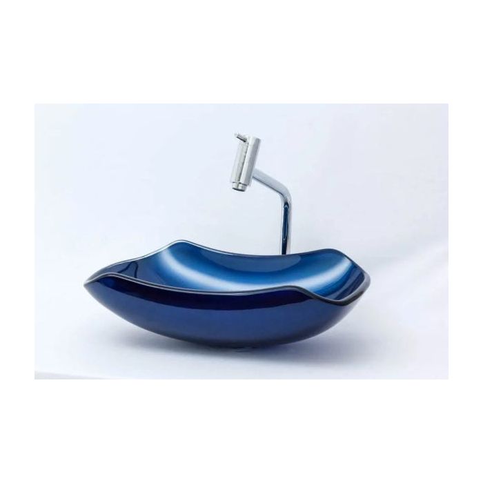 Kit: Cuba de vidro Abaulada + Torneira Link + Válvula + Sifão - Azul escuro