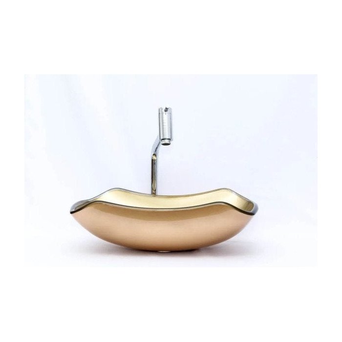 Kit: Cuba de vidro Abaulada + Torneira Link + Válvula + Sifão - Dourado Dourado