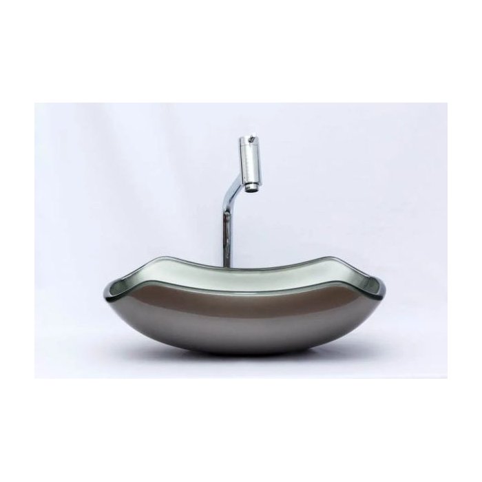 Kit: Cuba de vidro Abaulada + Torneira Link + Válvula + Sifão - Marrom amarelado