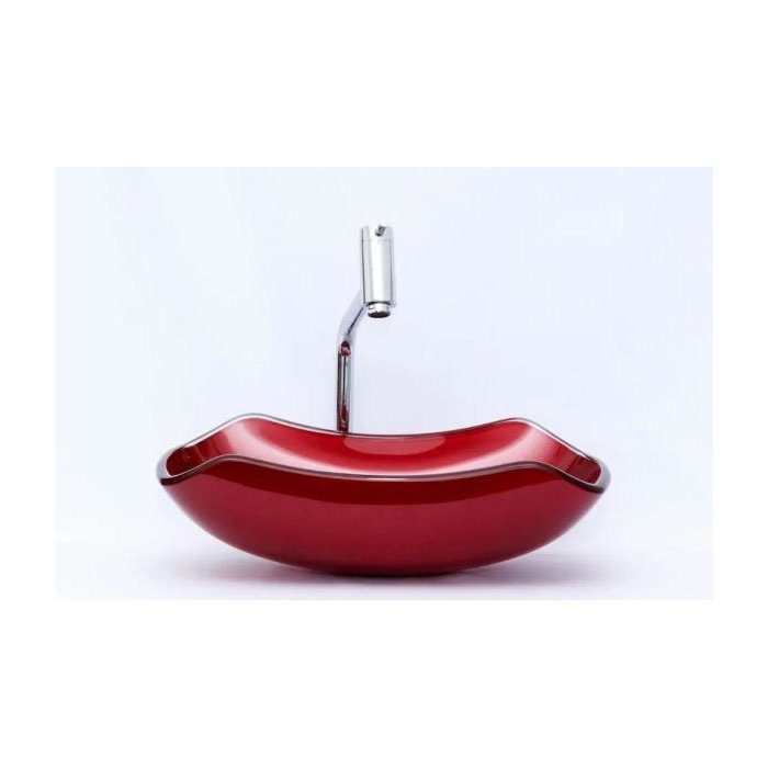 Kit: Cuba de vidro Abaulada + Torneira Link + Válvula + Sifão - Vermelho escuro