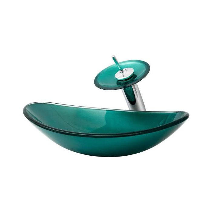 Kit: Cuba de Vidro Oval + Torneira Cascata + Válvula Click - Verde Escuro
