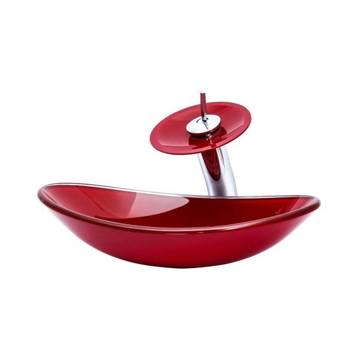 Kit: Cuba de Vidro Oval + Torneira Cascata + Válvula Click - Vermelho