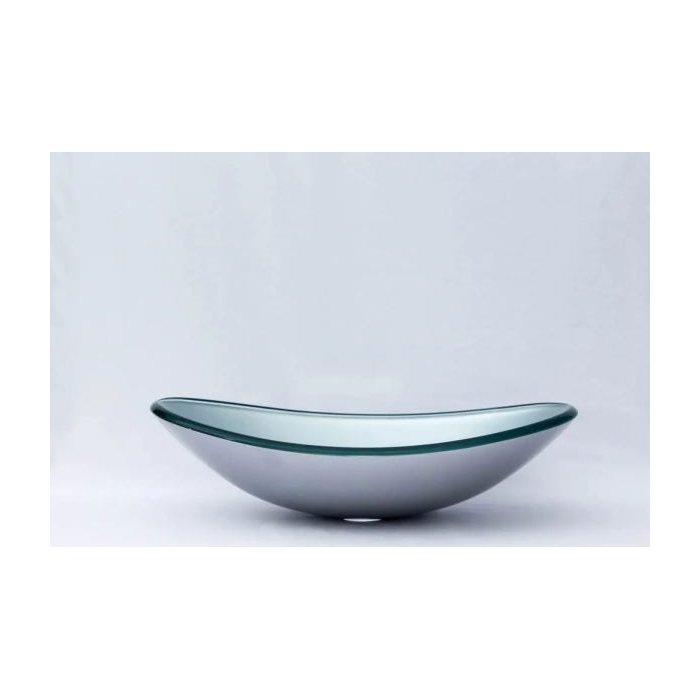 Kit: Cuba de Vidro Oval + Torneira Cascata + Válvula + Sifão - Cinza Claro