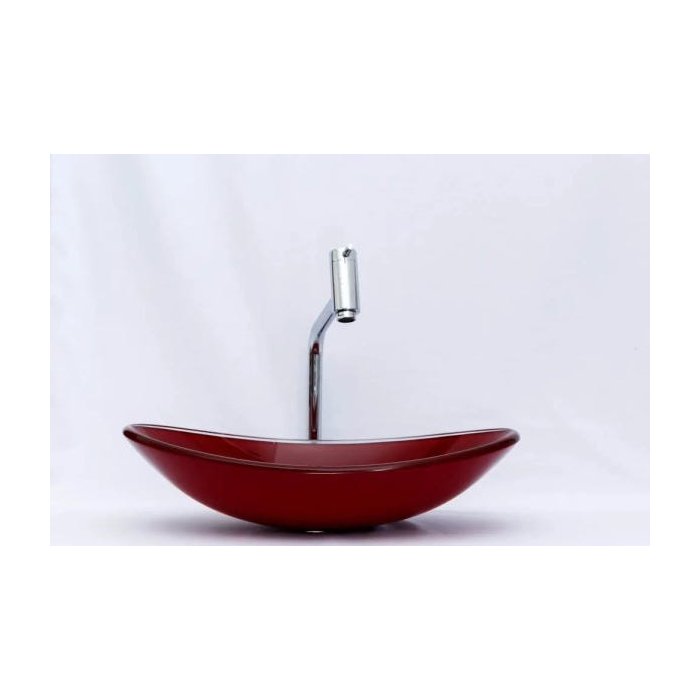 Kit: Cuba de Vidro Oval + Torneira Link Alta + Válvula Click - Vermelho Vermelho