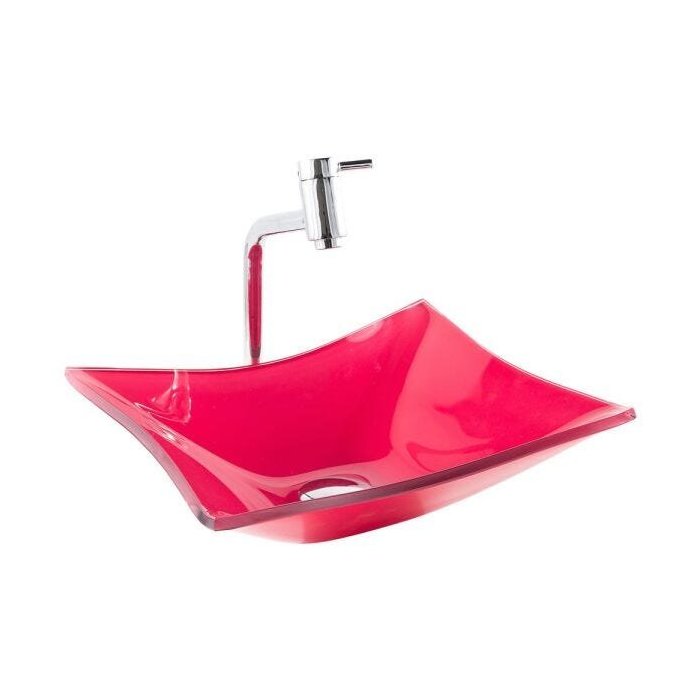 Kit: Cuba de vidro Retangular Rosa + Torneira Link Alta + Válvula