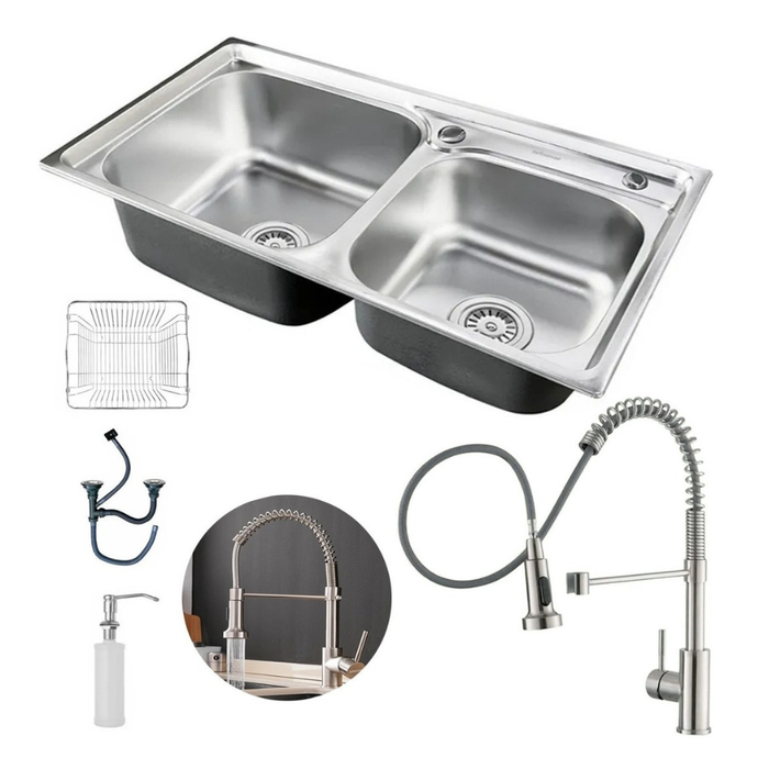 Kit Cuba Dupla Cozinha Gourmet Aço Inox Acessórios e Torneira Flexível Brinovar