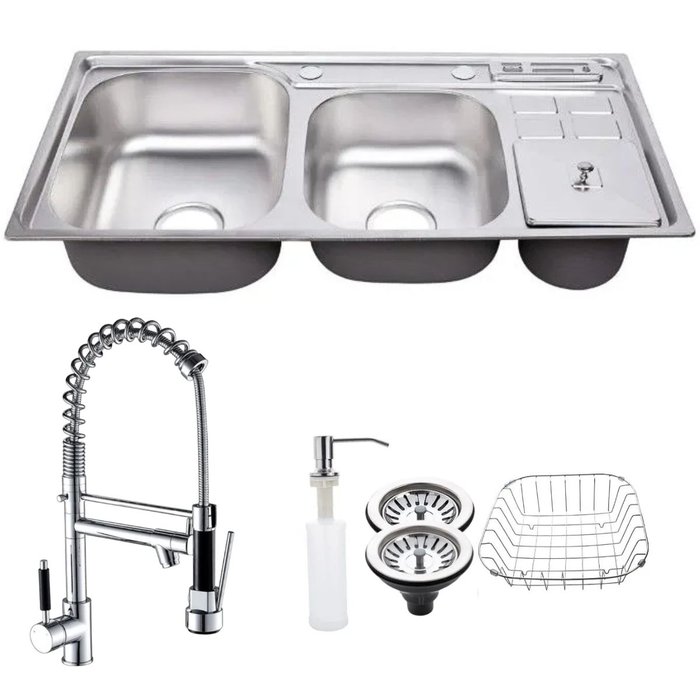 Kit Cuba Dupla Cozinha Inox C Lixeira + Torneira Monocomando