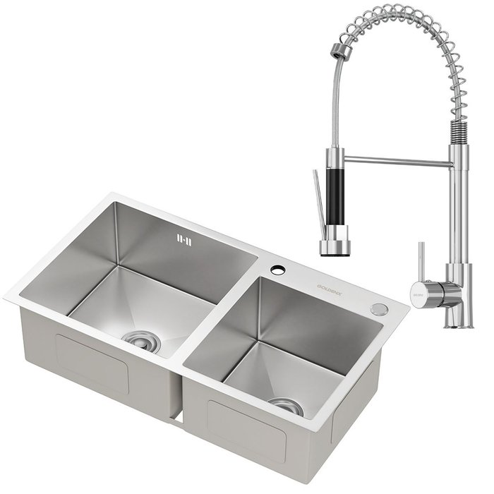 Kit Cuba Dupla Gourmet Nápoles Aço Inox 304 e Torneira Gourmet Genebra Monocomando Goldenx