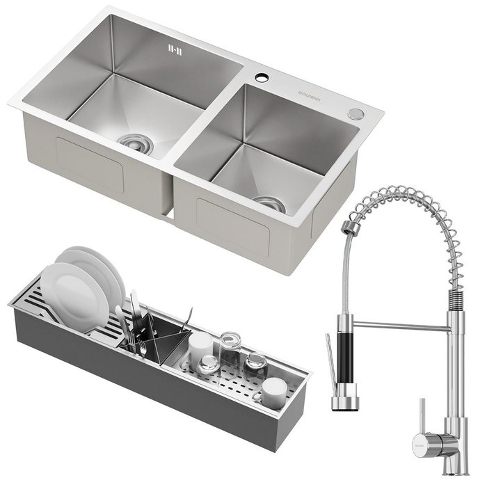 Kit Cuba Dupla Nápoles Aço Inox 304 Calha Oragnizadora Aço Inox e Torneira Genebra Monocomando Golde