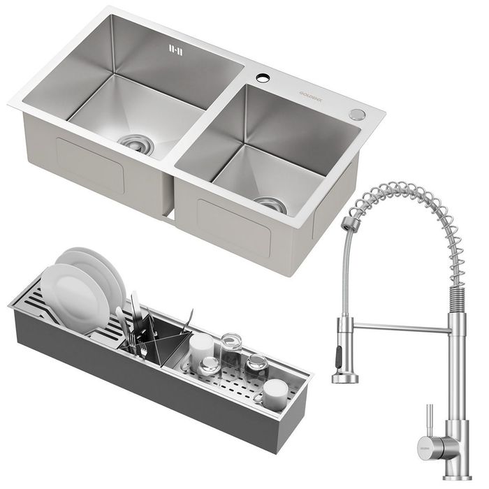 Kit Cuba Dupla Nápoles Aço Inox 304 Calha Oragnizadora Aço Inox e Torneira Milão Monocomando Goldenx