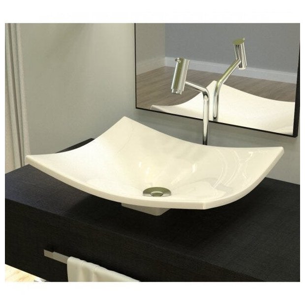 1 Cuba de Apoio, 1 Torneira de mesa alta, 1 Válvula de Escoamento Clik Up, 1 Sifão PVC Universal Branco ,1 Engate Flexível 40cm