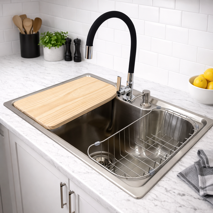 Kit Cuba Gourmet Cozinha Aço Inox 201 + Torneira + Acessórios + Tabua