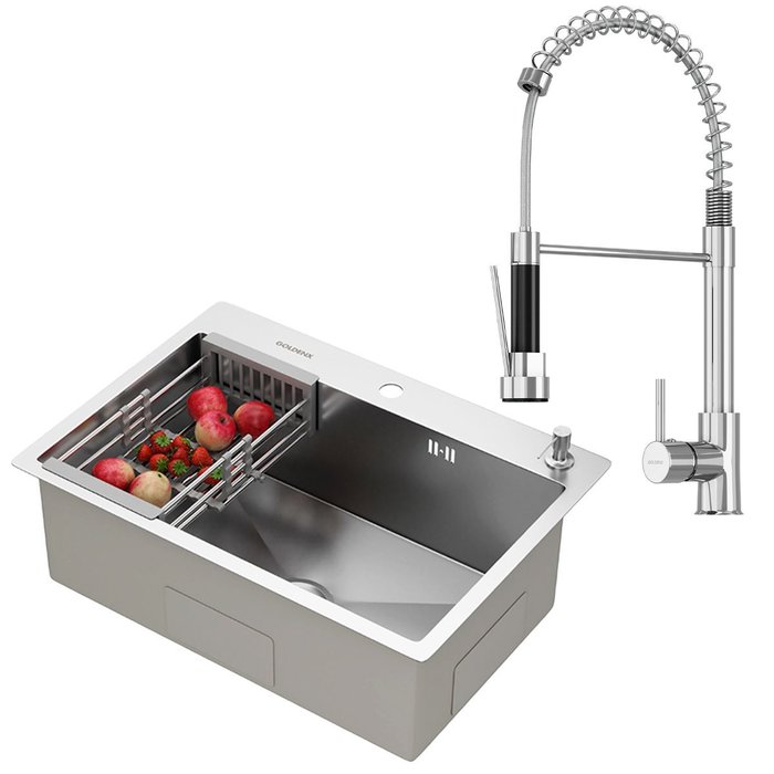 Kit Cuba Gourmet Quebec 62cm Aço Inox 304 e Torneira Gourmet Genebra Monocomando Goldenx cromado com detalhes em preto