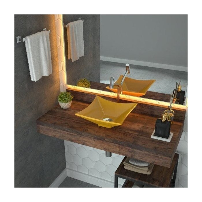 1 Cuba de Apoio ,1 Torneira de mesa alta , 1 Válvula de Escoamento Clik Up ,1 Sifão PVC Universal Branco, 1 Engate Flexível 40cm