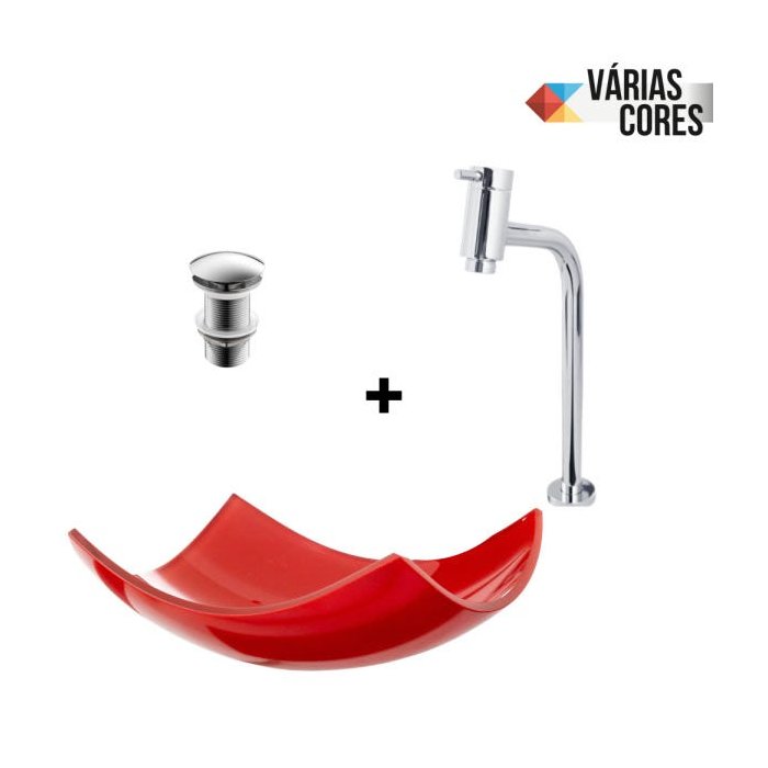 Kit: Cuba Lótus + Torneira Link + Válvula Click - Vermelho