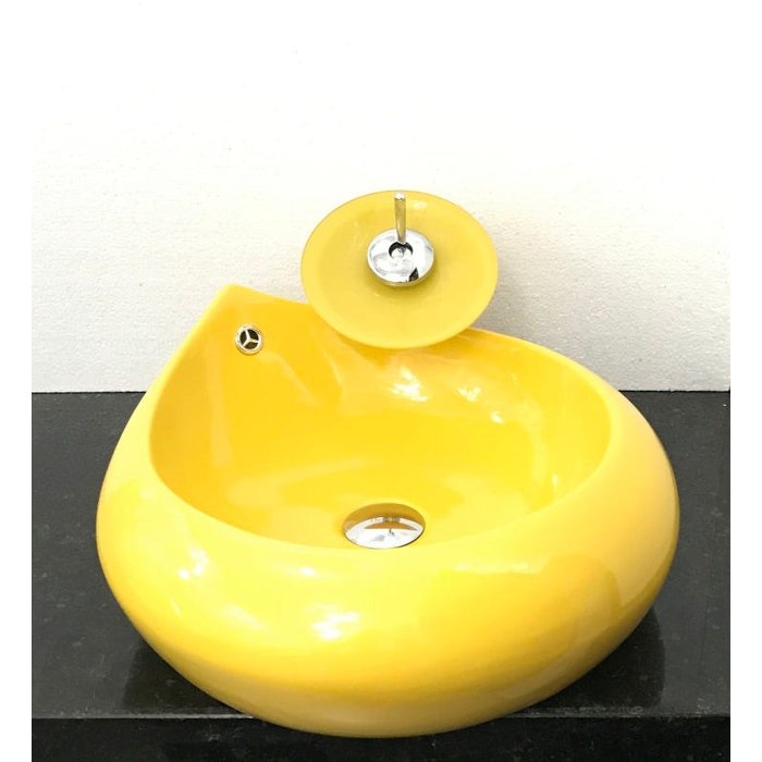 Kit cuba louça amarela gota,válvula,torneira e sifão