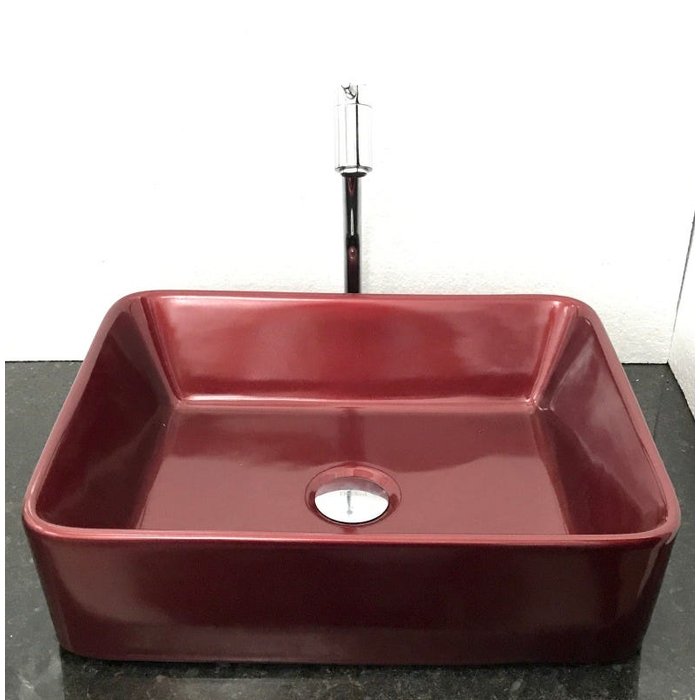 Kit cuba louça retangular vermelh vinho,válvula e torneira