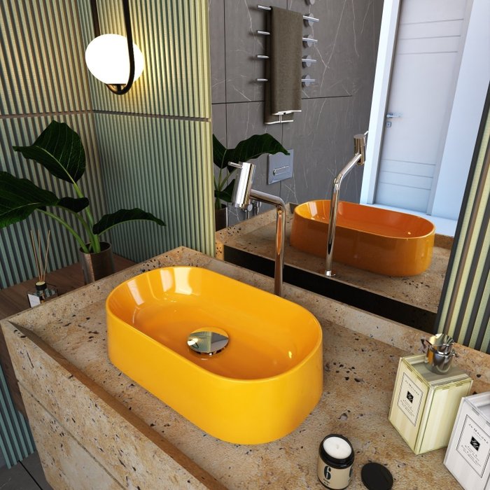 O Kit KTCAOV420W.AM.V03 é uma combinação perfeita da Cuba de Apoio CAOV420W.AM com acessórios complementares, prontos para instalação no seu lavabo ou móvel de banheiro. Ele conta com 1 Cuba de Apoio Oval Laila 42,9X25,2cm Amarelo 1 Válvula P/Lavatório Click Up 1" (2,6cm) V03 Metal Cromado 0 0 0 0 , todos compatíveis e prontos para instalação.