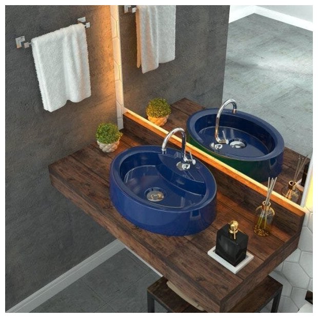 Kit Cuba Ov43 com Torneira 1198 Metal e Válvula Click 1 Polegada B e Sifão Pvc e Flexível Compace Azul Escuro