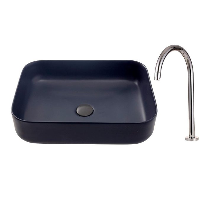 Kit Cuba para Banheiro Retangular Slim Cerâmica Fluorita e Torneira Alta Javari - Cinza Fosco e Prata