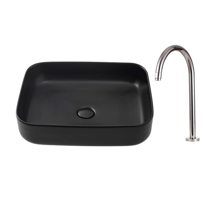 Kit Cuba para Banheiro Retangular Slim Cerâmica Fluorita e Torneira Alta Javari - Preto e Prata