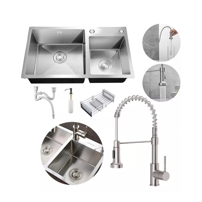 Kit Cuba Pia Dupla Cozinha Gourmet Completa com Acessórios e Torneira Extensível Aço Inox Inox