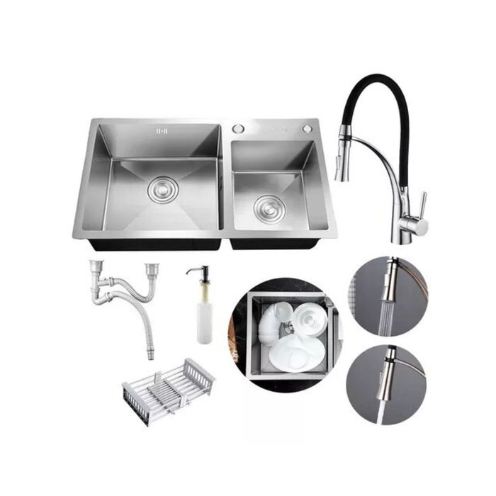 Kit Cuba Pia Gourmet Cozinha Aço Inox Com Torneira De Luxo Mangueira Preta Monocomando
