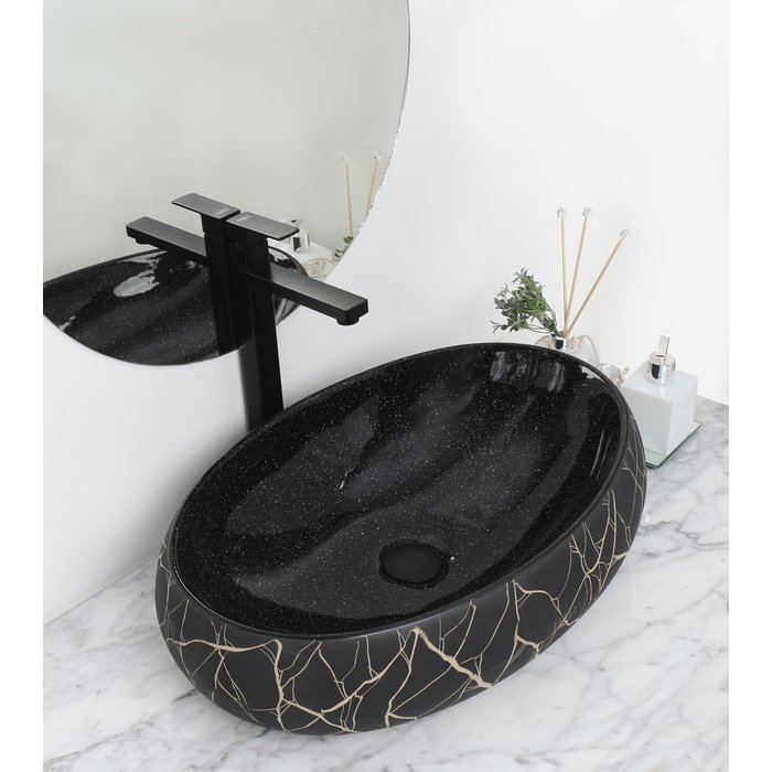 Kit Cuba Pia Louça Cerâmica Banheiro C/ Torn e Vál Preta S31 Preta