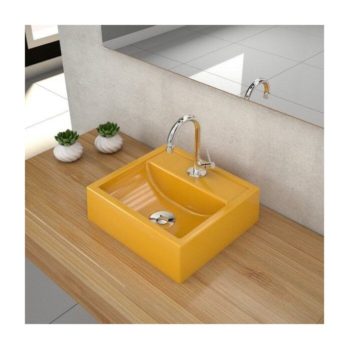 Kit Cuba Q32 com Torneira 1198 Metal e Válvula Click 1"b + Sifão Cromado e Flexível Compace Amarelo