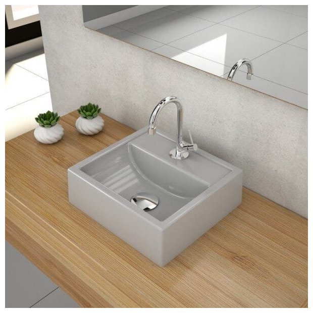 1 Cuba de Apoio, 1 Torneira de mesa baixa, 1 Válvula de Escoamento Clik Up, 1 Sifão PVC Universal Branco ,1 Engate Flexível 40cm