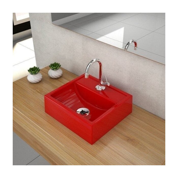 Kit Cuba Q32 com Torneira Luxo 1195 Metal e Válvula 1 Pol. Sifão Pvc e Flexivel Vermelho