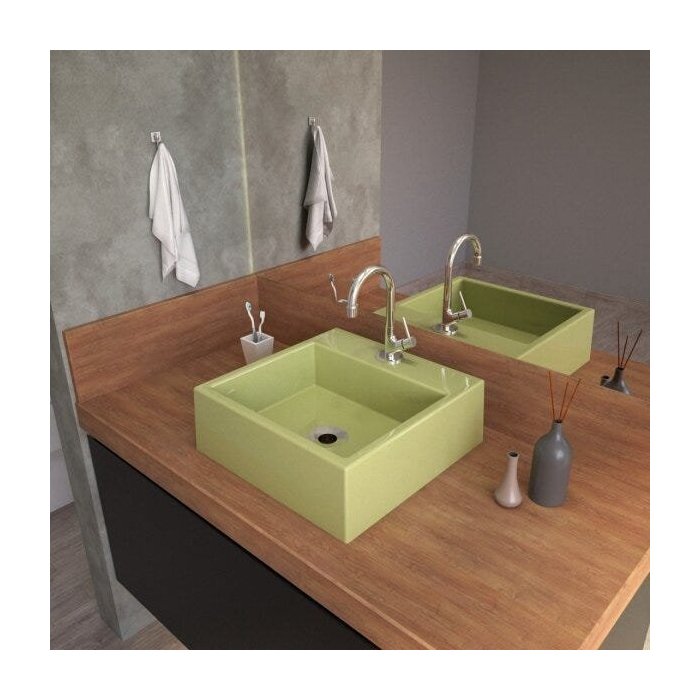 Kit Cuba Q355 com Torneira 1198 Metal e Válvula 1 Polegada e Sifão Cromado e Flexível Compace Verde Acqua