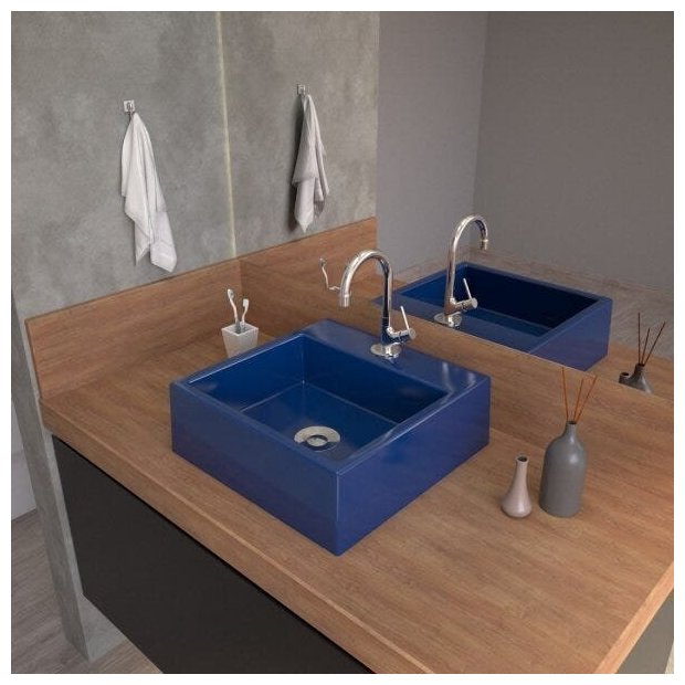 Kit Cuba Q355 com Torneira 1198 Metal e Válvula Click 1"b e Sifão Cromado e Flexível Compace Azul Escuro