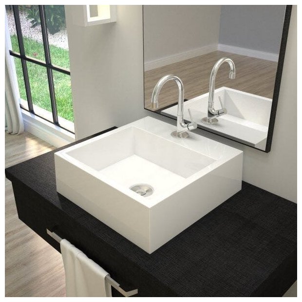 1 Cuba de Apoio , 1 Torneira de mesa baixa , 1 Válvula de Escoamento Clik Up , 1 Sifão PVC Universal Branco , 1 Engate Flexível 40cm