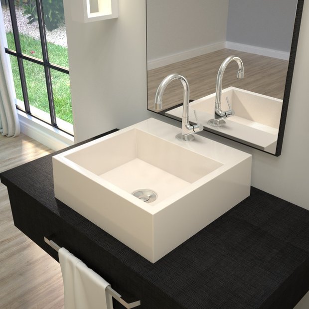 1 Cuba de Apoio, 1 Torneira de Mesa Baixa, 1 Válvula de Escoamento e Manual de Instalação