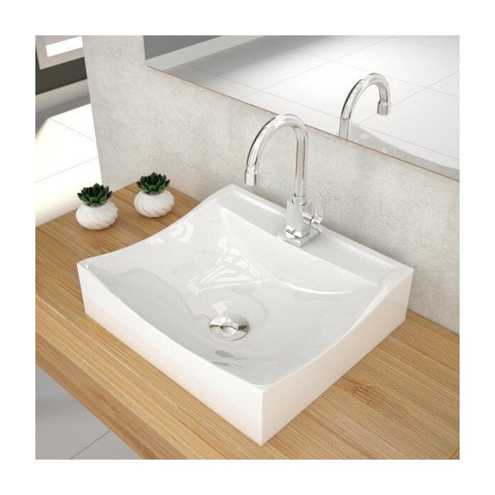 1 Cuba de Apoio,1 Torneira de mesa baixa, 1 Válvula de Escoamento Clik Up, 1 Sifão PVC Universal Branco , 1 Engate Flexível 40cm
