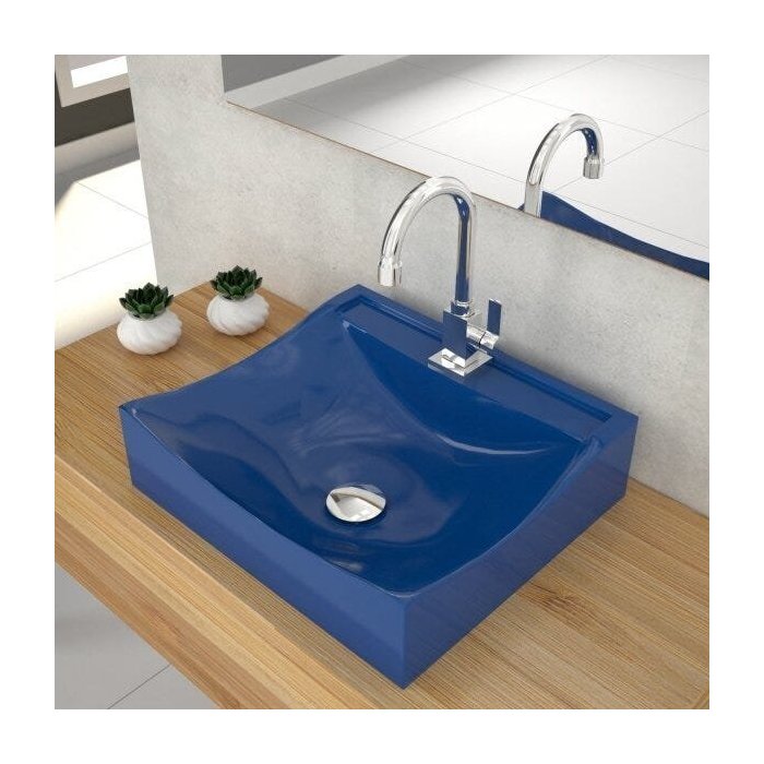Kit Cuba Q440 com Torneira Luxo 1195 Metal e Válvula Click 1 Pol. Sifão Cromado e Flexível Compace Azul Escuro