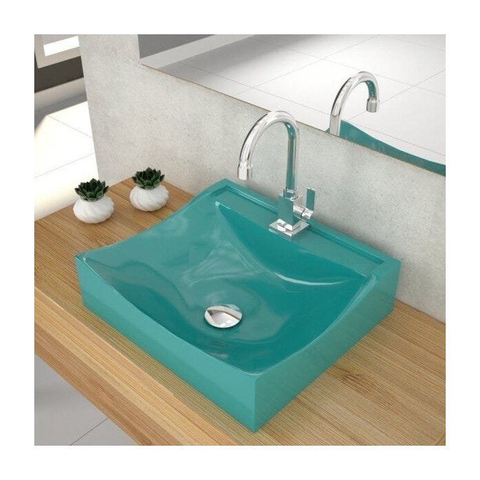 Kit Cuba Q440 com Torneira Luxo 1195 Metal e Válvula Click 1 Pol. Sifão Cromado e Flexível Compace Azul Turquesa