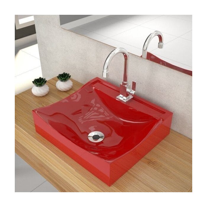 Kit Cuba Q440 com Torneira Luxo 1195 Metal Válvula 1 Pol. Sifão Pvc e Flexível Compace Vermelho